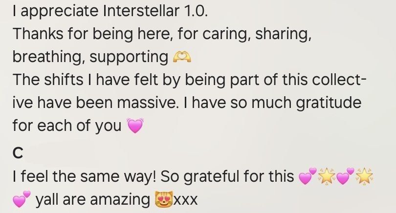 In Interstellar we have weekly calls and an active community Whatsapp keeping you feeling supported, and accountable.