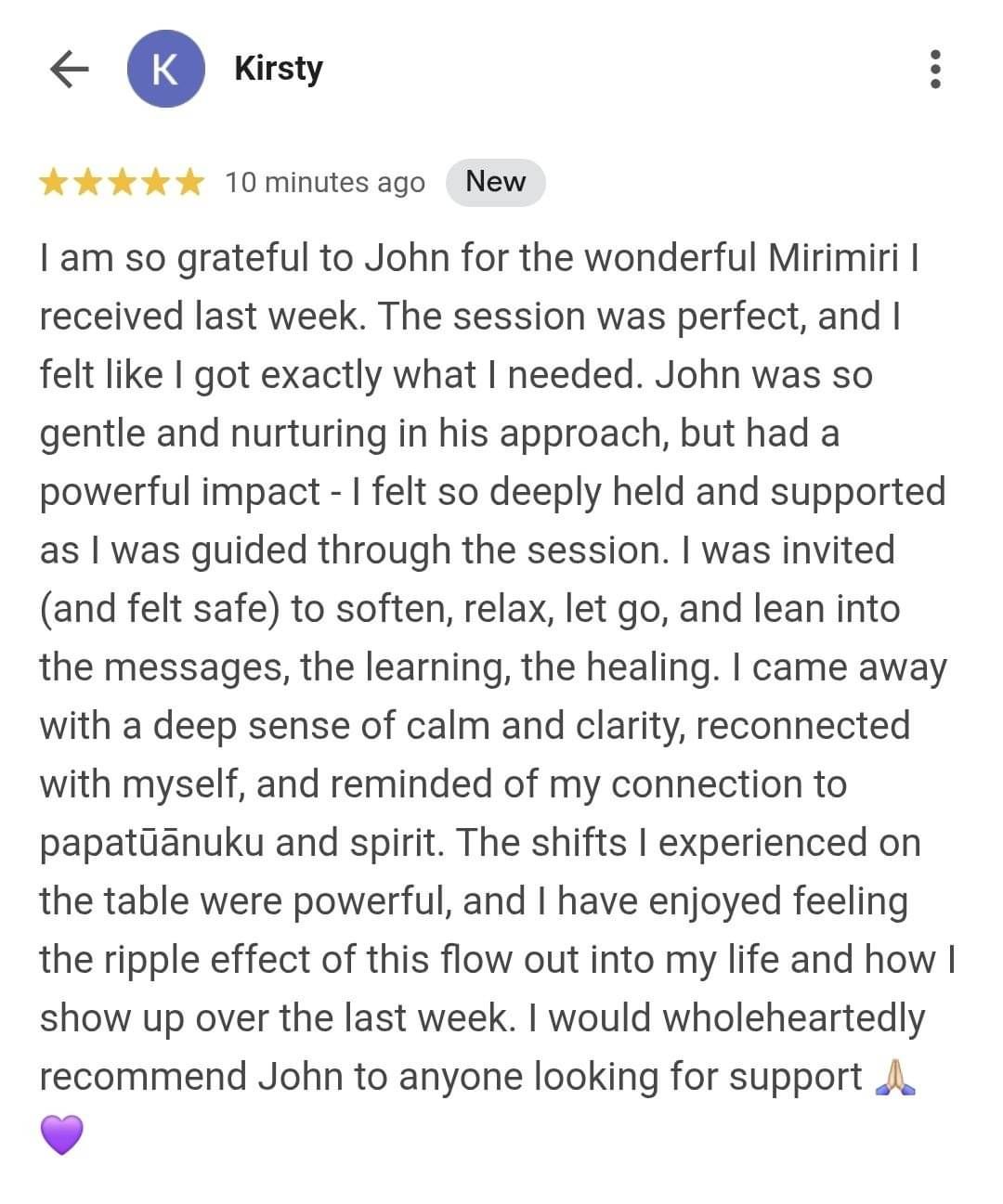 "If you are intrigued by breathwork in Christchurch, I urge you to explore it further. That was me and I am so glad I did. You won’t really know what to expect until you experience it. John holds a safe space of openness allowing you to go deeper into yourself. His calm, gentle and intuitive energy will make you feel at ease. He guides you through your breathwork journey with empathy and care. His level of care extends after your session. I really appreciated the follow-up. If you have read this far. Do it! What are you waiting for?"